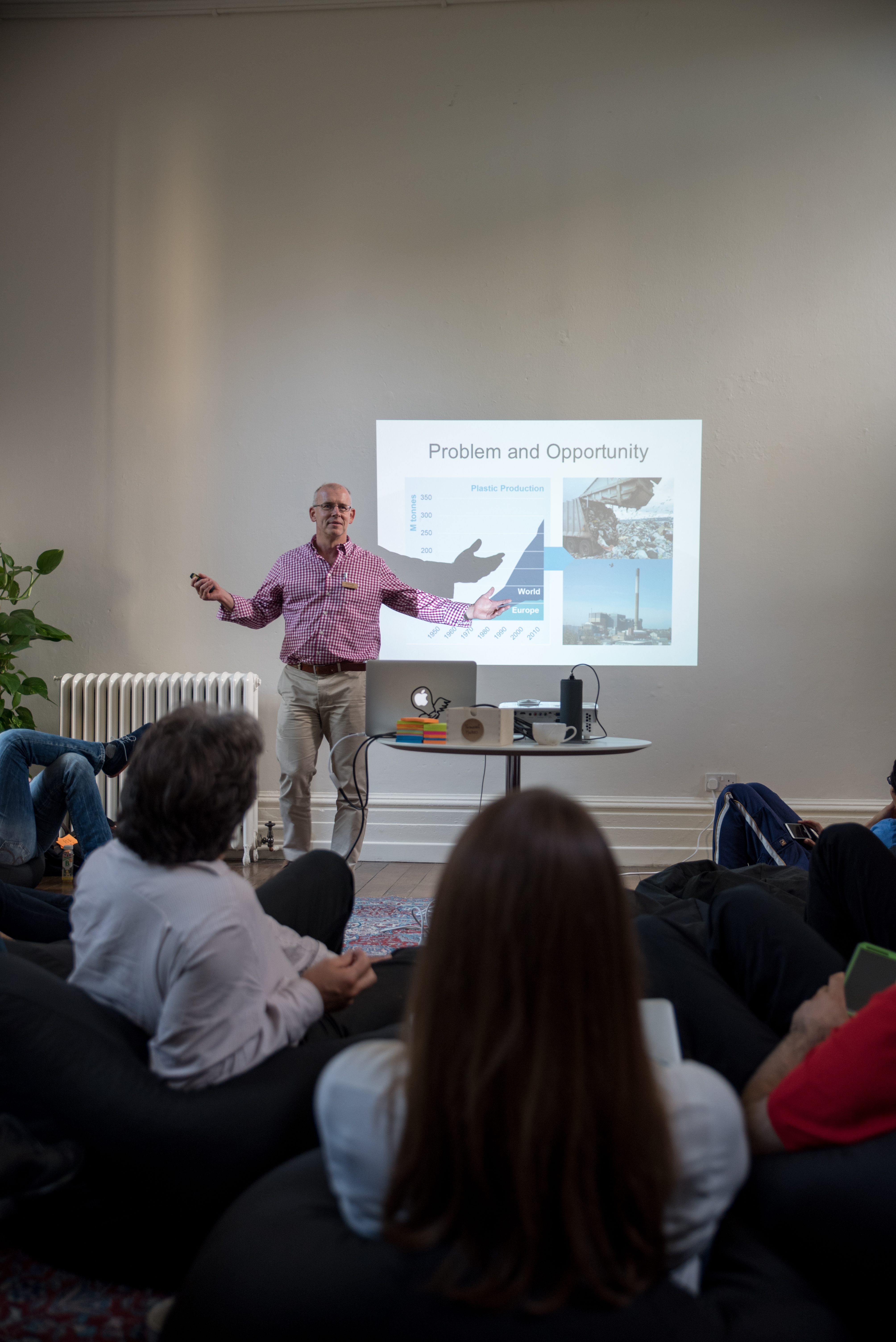 Adrian Griffiths, CEO, presenting his vision for Recycling Technologies at the Unreasonable Impact accelerator programme for entrepreneurs tackling global challenges